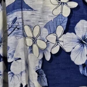 Bermuda Bay Blue and White Hawaiian Floral Tropical 100% Silk Mens Shirt Sz XXL.