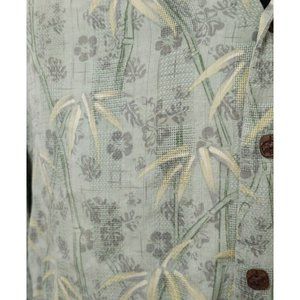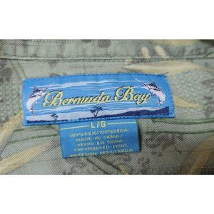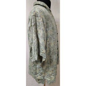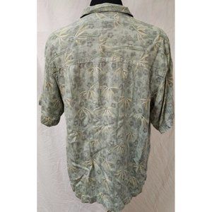 Brand & Description: Bermuda Bay Large Green Floral Palm Trees Hawaiian Tropical Silk Button Shirt