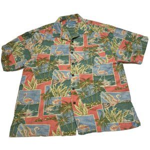 Bermuda Bay Pink Flamingo Hawaiian Button Shirt Mens Size XL