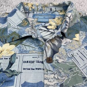 Bermuda Bay 100% Silk Camp Shirt Loop Collar Hawaiian Islands Travel Floral Fishing
