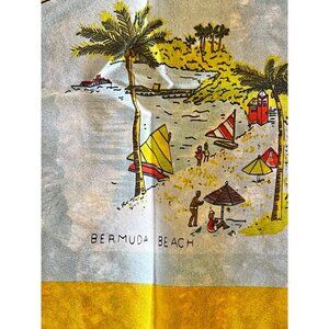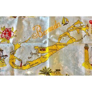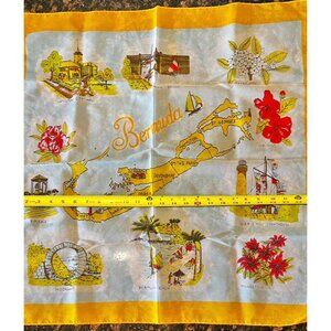 Bermuda Map Scarf 26” X 27” Yellow Border Landmarks & Illustrations vintage