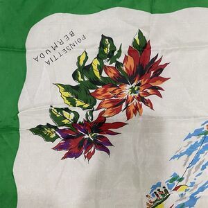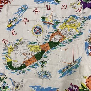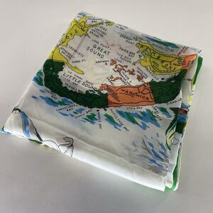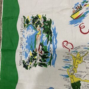 * Large Bermuda Map Scarf Flowers, Landmarks & Illustrations Vintage Hand Rolled Edges.