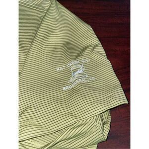 Lightly used. Color is close to spring green. It is a yellow green. Has an embroidery logo on one of the sleeves. (Shown in picture).