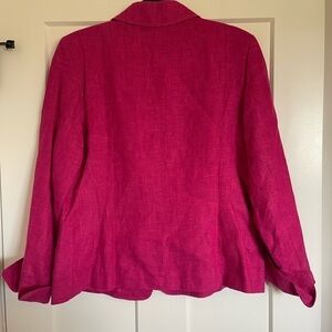 Bern and Mort 100% Linen blazer, size 12, tortoise buttons, fuchsia color