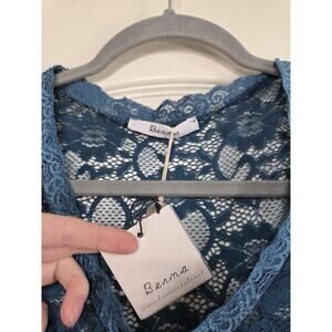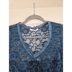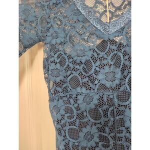 Berna Italy Teal Green Floral Lace High Low Hem Midi Dress NWT, Size Small