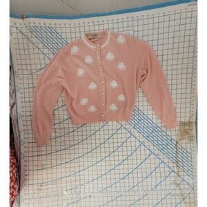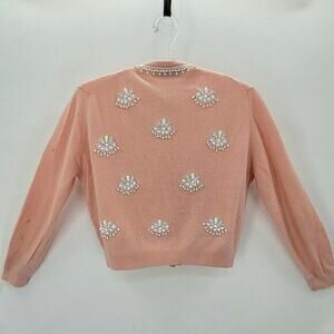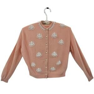 Bernard Altmann Vintage 60s Pink Beaded 8 Glass Button Crew Neck Lolita Cardigan