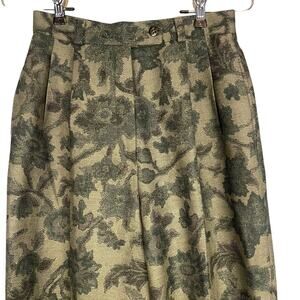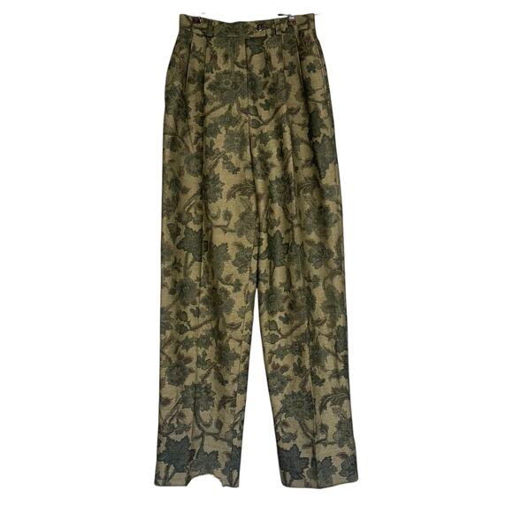 Bernard Zins Paris Vintage Floral Wool Lined Trousers Green Women's Size 2P