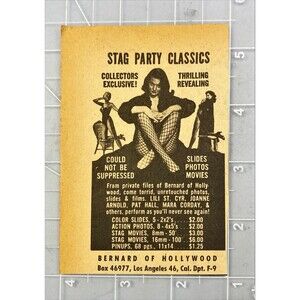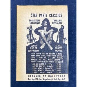 Bernard of Hollywood "Stag Party Classics" Los Angeles, CA., Vintage Print Ad 1956 Railroad Magazine October 1956 About 3 x 4.5 Inches. Carefully shipped.