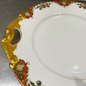 Bernardaud Limoges HANDLED TRAY Handpainted Red Green GOLD 10.5"