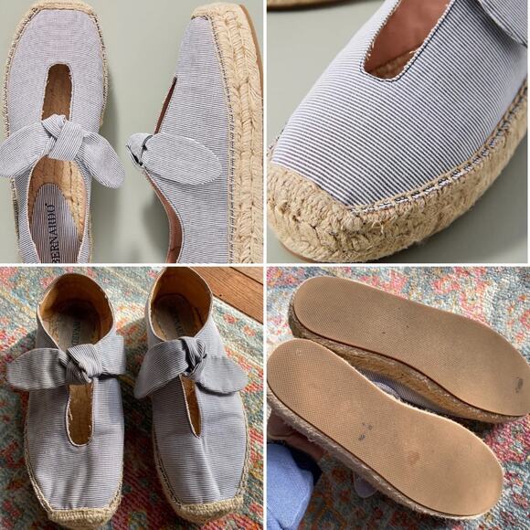 Bernardo Anthropologie $258 Navy Why Stripe Viola Espadrille l Womens 7M EUC