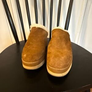 Bernardo Anthropologie sky sherpa lined wooden clogs size 7