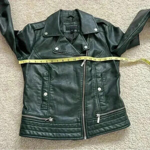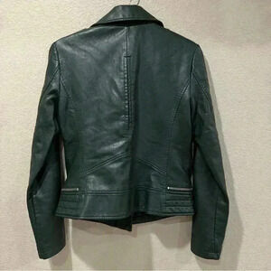 Bernardo Asymmetrical Zip Moto Jacket Women Sz Small Faux Leather Green 7558B373. Preowned condition, normal wear, pictures provided