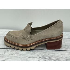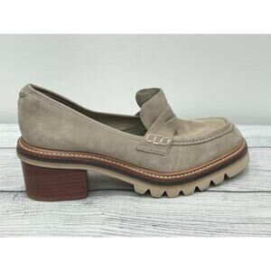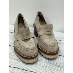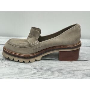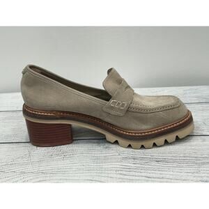 Bernardo Beige Selma Suede Slip On Lug Sole Block Heel Penny Loafer Y2K 6M