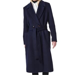 Bernardo Belted Wool Blend Longline Coat - Deep Navy Size M