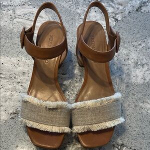 Bernardo Bernardo Tan and Cream Brown Sandals Block Heel Size 6.5