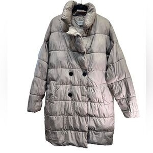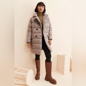 Anthropologie Bernardo Bernie Duvet Puffer brown gray color. Double breasted duvet puffer coat w/ side pockets Button front closure, the last button did get ripped up. See photo. Oversized, soft plush, cozy, light weight, packable.