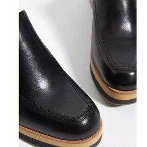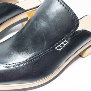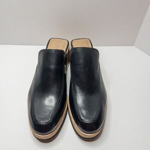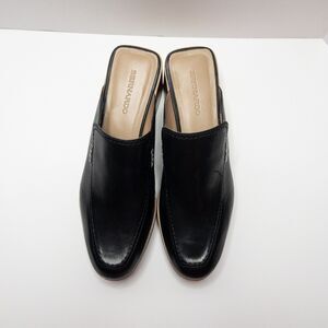 Bernardo Black Leather Block Heel Mules Slides Women’s 10M Square Toe Clogs