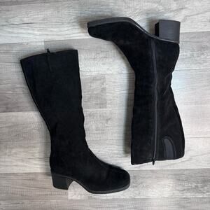Bernardo Black Suede Knee High Boots Y2K Block Heel Size 6 1/2 Minimalist Fall