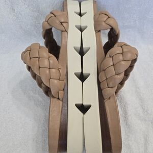 Stylish braided design. Comfortable platform sole. Women's size 9.5. They are in good pre-owned condition with light/average wear.