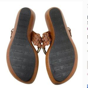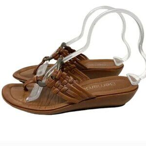 Bernardo Brown Leather Metallic Ring Wedge Thong Sandals - Size 7