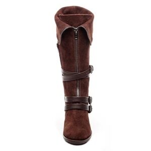 Bernardo Brown Suede Wrap Buckle 2 Way Fold Zipper Heeled Bennie Boot EUC Size 9