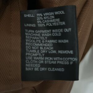 Bernardo Collection brown coat. Full zipper. Mid-length. Pockets. Thick. Lined. Structured style fit. 75% virgin wool, 20% nylon, 5% cashmere.