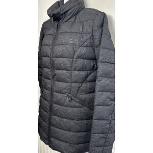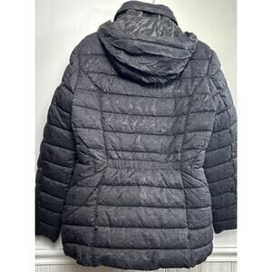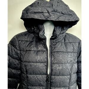 Bernardo Eco Plume Women's Puffer Jacket Coat M Black Textured Hidden Hood Quilt