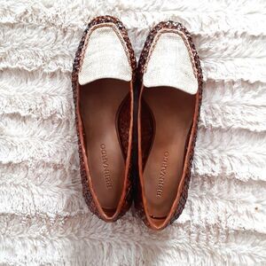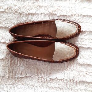 Bernardo Edyth Flat Loafers Size 7M Brown Raffia Leather Coastal Chic Preppy