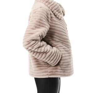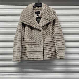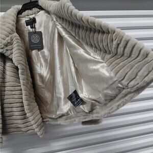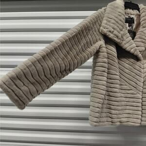 Bernardo Beige Faux Fur Coat Jacket Women’s Size Large Plush Soft Fluffy Warm Elegant Chic Quiet Luxury Minimalist