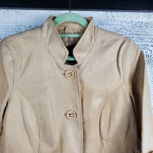 Bernardo Genuine Leather Blazer Tan Button Closure Coat Size Small