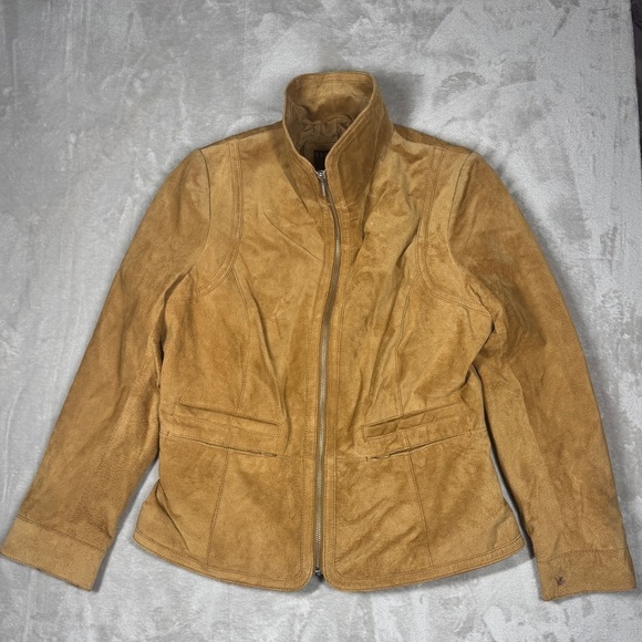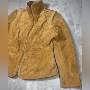 Bernardo Genuine Leather Suede Camel Tan Boho Coastal Cowgirl Jacket Size PM