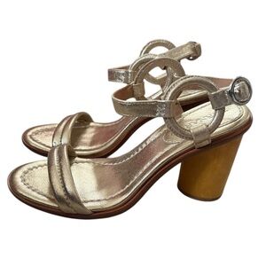 Bernardo Harlow block heel sandals size 6.5 excellent condition gold metallic
