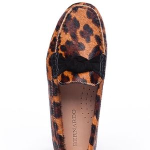 Bernardo Janie Women’s Animal Print Leather Loafers Leopard Print Knotted Ballet Flats Shoe