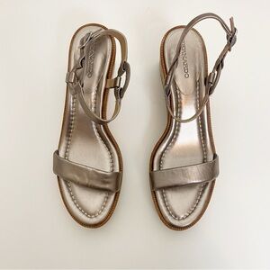 Bernardo Kennedy Metallic Cork Wedge Sandals Heels