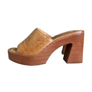 Bernardo Kenny Woven Leather Platform Mule Brown 10.5 Square Toe Block Heel Boho