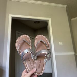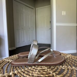 Bernardo Leia Metallic Leather Thong Sandals Womens 7 Silver Shoe