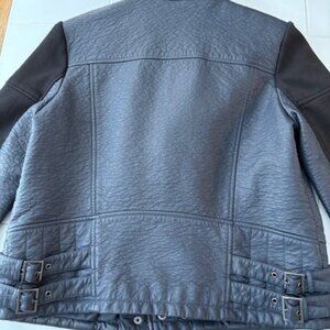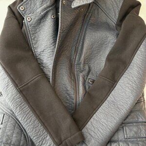 Black with knit sleeves. Faux suede body. Double straps with buckles on each side. Large but fits like a medium.
