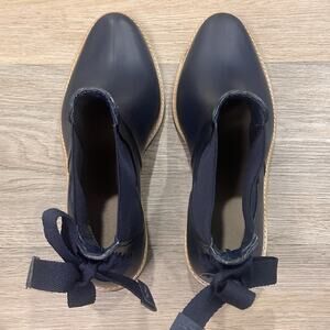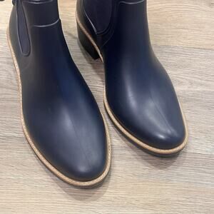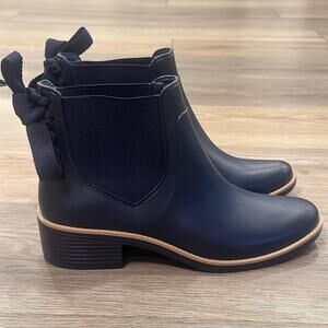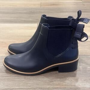 Bernardo NEW Women’s 8 Paxton Rain Boots Booties Back Lace-Up Navy Blue Preppy
