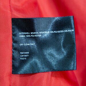 Outer shell: 36% wool, 35% acrylic, 19% polyester, 10% nylon; lining: 100% polyester; dry clean only
