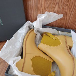 April Showers? Bring 'em on. Turn heads in these adorable waterproof, lace up rubber booties. Boots have never been worn.