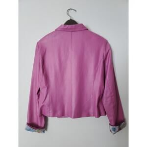 Bernardo Pink Petunia Spring Leather XL Fitted Moto/Barbie Jacket Floral Lining.