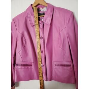 Bernardo Pink Petunia Leather XL Fitted Moto/Barbie SPRING Jacket Floral Lining