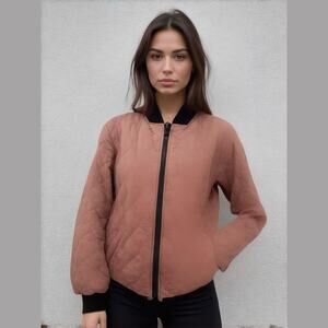 Bernardo Pink Quilted Reversible Floral Lined Zip Front Casual Bomber Jacket L