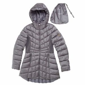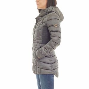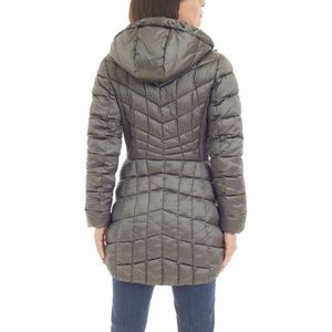 Bernardo Quilted Gray Packable Puffer Hood Jacket