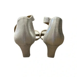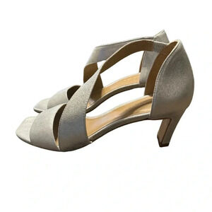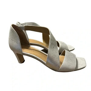 đź‘ Bernardo Silver Leather Asymmetrical Strap Heels Women’s 9 Open Toe ✨ đź‘
