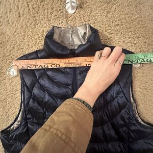 Bernardo Vest Women's Sz S Navy Metallic Goose Down Puffer Zip Athleisure Gorpcore