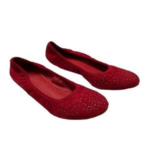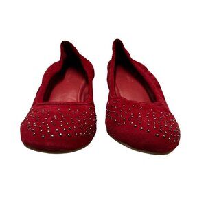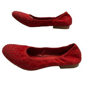 Bernardo Womens 10 Red Suede Ballerina Flats Brass Studded Slip On