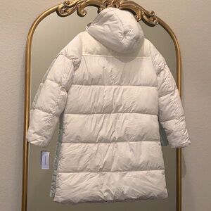two front patch pockets, fleece pocket lining, and drawcord hood. Color: warm white.