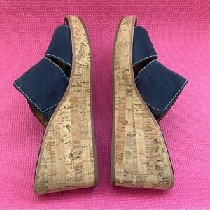 Bernardo Women's Kara Wedge Cork Sandal Size 10 Color Blue Suede