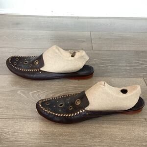 Bernardo Womens Leaerth Mule US 10M 10 M Brown Studded Flat Slip On Boho Classic